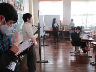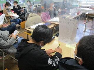 5・6年生は、昨日国語科で練習したスピーチを発表しました。相手の発表を聞いた後に感想を付せんに書いて、それをまた発表しました。