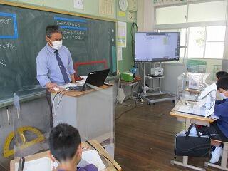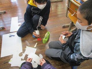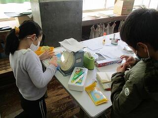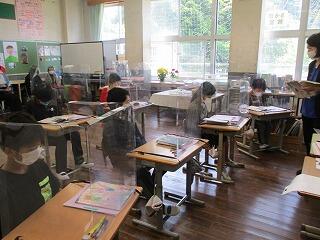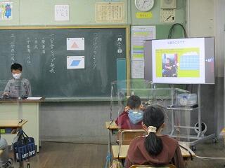 1年生は、国語説明文「どうぶつの赤ちゃん」の読み取りを学習しました。3年生は理科「ものの形と重さ」で粘土の形を変えながら重さを量っていました。5年生は算数「角柱と円柱」で実際に展開図から円柱を作成していました。