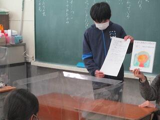 5年生は国語で「この本、おすすめします」という学習をしています。10日には、1・2年生教室や3・4年生教室に出向いて、その学年にすすめたい本を紹介しました。このように相手に自分の考えをしっかり伝える経験は大事だと思います。