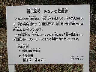 同じく10日(水)黒木デザイン社さんに、環境緑化推進事業看板を設置していただきました。運動場東側、ちょうど桜の木2本を植樹する穴と穴の間です。