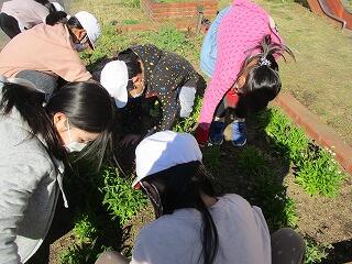 今日は昨日に続き、晴れてはいるものの冷たい風が吹く中での活動となりました。苗がすくすくと育つといいです。