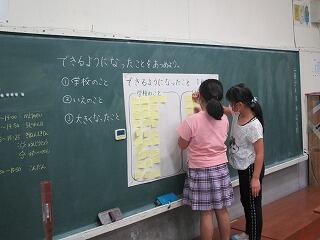 1・2年生は、生活科の学習でこの一年で「できるようになったこと」を付せんに書き出し、発表しました。