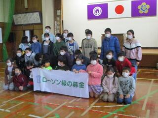 急遽、体育館での実施となりました。ローソン株式会社の「緑の募金」の支援による、国や県の緑化推進機構、延岡市みどり推進会議の助成を受けての事業が完成しました。来賓の方3名をお招きし、6年生が挨拶の中で梅林を守るために取り組んだことを発表しました。
