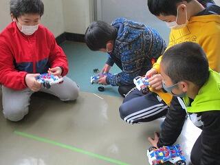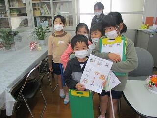 大夢君は1・2年生が用意した紙芝居・クイズ・学校探検等に参加しました。1・2年生に囲まれて楽しそうでした。