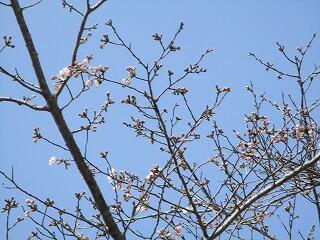 今日は穏やかな天気ですが、午前中は黄砂の影響か、遠くがかすんで見えました。2月には梅の花をついばんでいたメジロが、今度は桜の花をついばんでいました。池にはメダカの群れも出てきました。
