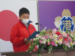 児童代表として、2年市川竜史君、4年黒田咲希さん、5年市川汰史君が、1年間を振り返った作文を発表しました。