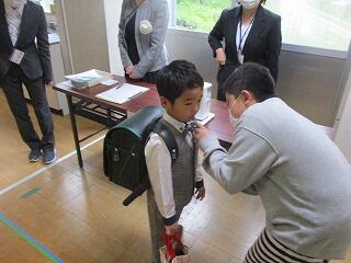 昨日、新入学児童保護者説明会が行われました。次年度入学予定の富髙大夢君は1・2年生との交流会へ、お父さんとお母さんは説明会へ参加しました。説明会ではそれぞれの担当から入学時に必要なことの説明がありました。