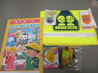 入学の際には例年県内の新入生に対して、下記のように、各企業から様々な安全グッズをご提供いただき感謝いたします。