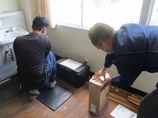 3階図工準備室にある地殻変動計測器の電源装置を取り替えるためです。アンテナで人工衛星からの電波を受信して、数㎜の精度で地殻変動を観測しているそうです。