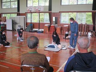 今日は、延岡市消防本部の山下さんをお招きして心肺蘇生法講習会を行いました。職員と放課後子ども教室の安全管理員の皆さんが参加しました。