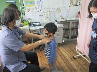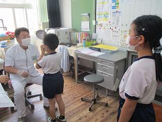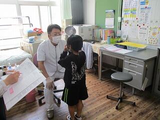 今日、内科検診がありました。北浦診療所の日髙利昭先生が検診を行ってくださいました。本年度も、みんなが元気に教育活動を行うための大切な検診です。
