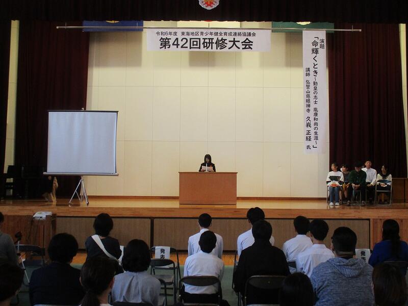 11月17日(日)、東海中学校で『東海地区青少協第42回研修大会』が行われました。内容は、講演(講師:弘誓山慈眼禅寺の久峩正経 氏)、アトラクション(東海中吹奏楽部の発表)、意見発表でした。