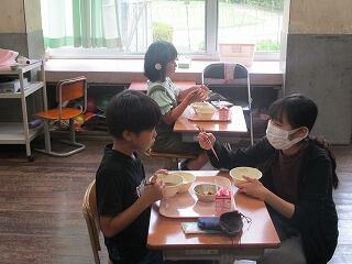 今日の給食は夏野菜カレー。暑い日でも食欲をそそります。写真を撮りに教室をのぞいたら、みんなもう元気に食べ終わった後でした。「おいしかったです。」とのことでした。