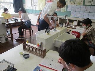 6年生理科の授業では、鉄やアルミニウムを塩酸に溶かす実験を行いました。物質が別のものに変化する化学の基礎になる学習でした。