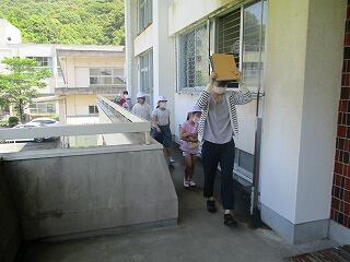11日(月)の登校日に梅ちぎりを予定していますが、その事前準備に本日、市教育委員会総務課の方々と6校(川島小・熊野江小・東海中・北川中・東海東小・南浦中)の学校技術員の方々、総勢9名の方々が、港小学校の応援に来てくださいました。子供達が梅をちぎりやすいように、梅林の下草を刈ってくださると共に、途中の道沿いや校庭の草も刈ってくださいました。職員だけでは何日もかかるような作業を半日で行っていただき、本当に感謝いたします。梅林もすっきりして当日を迎えることができそうです。子供達にも、ただ梅ちぎりを体験するだけでなく、下準備してくださった方々の思いを伝えていきたいと思います。