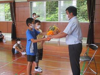 12日(金)11時45分より離任式を行いました。全校児童を代表して、6年の松本さんが「お礼の言葉」を述べ、5年の歌津君、市川君が花束とお礼の手紙を贈呈しました。教頭先生の理科の授業が、とても面白くて楽しかったようです。最後はみんなで間を開けながらもアーチでお見送りしました。