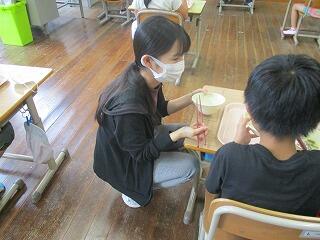 6年生は、理科の「人体の働き」の授業で、歯やだ液の消化に関する実験を行いました。自分の歯に関心をもつきっかけになるとよいと思います。