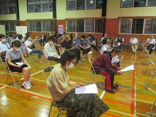 昨日県内の様々な中学校で体育祭が行われましたが、本校では今日結団式が行われました。日差しも少しずつ和らぐ中で、10月11日の運動会へ向けて練習が始まります。