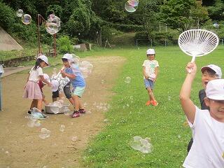 それから、SL公園へ行く予定でしたが、雨が降り出しましたので、すぐ近くの恒富小学校の体育館をご厚意でお借りして、お昼ごはんと自由遊びの時間を過ごしました。みんな楽しく過ごせました。恒富小学校のみなさん、ありがとうございました。