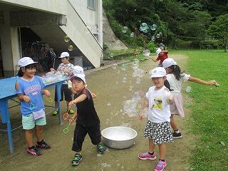 先週のことですが、給食を終えた子供達が「変なものがあります。」と言っています。確かにバナナの葉っぱの下に変なものが・・・。泡のかたまりのようです。教頭先生が調べたところ「モリアオガエルの卵では」とのことです。生息地は本州とありますが、ここにもいるようです。テレビや本で見たことがあるものを実際に見ると面白いです。