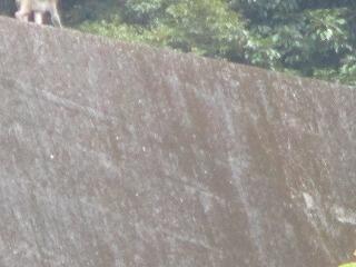 昨日先生方から「裏山で子猿が4匹遊んでいます。」との声。早速砂防ダムの上にいるところを写真に撮りましたが、それを見た教頭先生が笑顔で一言、「この写真だけじゃあ、犬と思われるかもしれませんねえ。」今度見かけたらしっかり撮りたいです。しかし、夏休みになったとたん現れるとは、やはり人間の気配をしっかり感じ取っているのでしょう。思えば海近くのこの裏山も大分の高崎山までつながっているのですね。