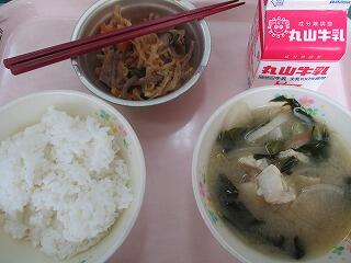 給食は二日連続で地元食材です。和牛丼が出ました。さすが、牛肉の甘みがしっかりとしていました。