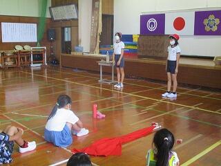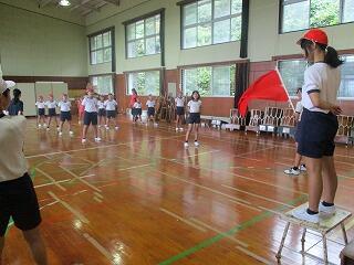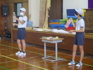 梅雨に入りぐずついた天気が続いていますが、6月は大きな行事もなく、どの学年でも落ち着いて学習へ取り組む様子が見られます。朝の活動では、あたらしく購入したモップの使い方について全体への指導が行われました。