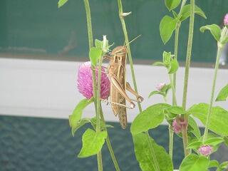 このトノサマバッタは、台風10号による臨時休業の次の日、先週8日(火)学校玄関先のセンニチコウのプランターで見かけたバッタです。センニチコウの花・苞の部分をモシャモシャ食べていたのですが、すぐ飛んでいくだろうと思いそっとしておきました。