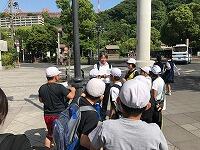 この後、城山展望台から鹿児島市内や対岸の桜島を一望した後、照国神社前に移動して、自主研修のスタートです。ここからは、班別に分かれての行動です。