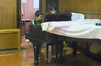 校歌斉唱では、6年男子児童が、「ピアノ伴奏」に初挑戦し、見事に演奏しました。