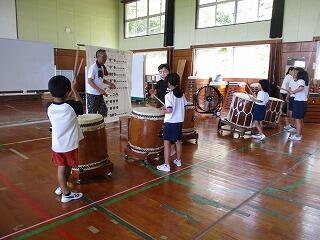 7月9日、今年度1回目の『港わんぱく太鼓』の練習がありました。本年度も、雲海太鼓の平野さんにご指導していただきます。子どもたちは、久しぶりの太鼓の練習を楽しみにしていたようです。はじめて太鼓の練習に参加する1年生も、上級生の様子を見たり、平野さんご夫婦から優しく教えていただいたりしながら、太鼓を楽しんでいました。今日は、『のべおか新ばんば踊り太鼓』の練習を中心に行いました。暑い中での練習でしたが、一生懸命取り組む様子が見られました。「太鼓、楽しい!上手になりたい!」という気持ちが伝わってきました。次の練習も、楽しみです。