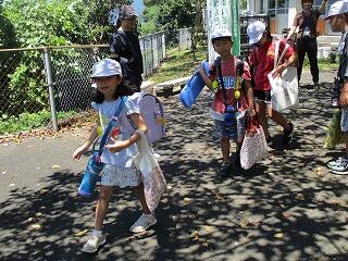 7月23日(火)は、5回目の水泳学習でした。浦城小学校のプールで、浦城小のお友達と一緒に水泳学習を行いました。この日が、今年度最後の水泳学習でした。プール納めです。