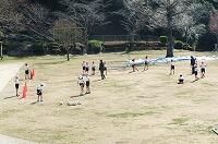 ビニール凧づくりを行いました。早速、運動場に出て、試し飛ばしをする子どもたちです。