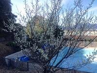 開花したのは、玄関前と梅林の数本、数輪ですが、寒さに負けず、白い小さな花を付けていました。