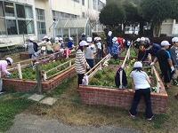 今年最初の「花いっぱい運動」を行いました。港小では、全校児童で花の栽培活動に取り組んでいます。