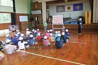あいにくの雨天のため、道路を使っての自転車走行練習はできず、体育館での学習となりました。