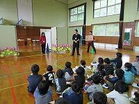 後半には、「スペシャルゲスト」 みやざき犬の「ひぃくん、むぅちゃん」が登場し、子どもも保護者も地域の方も先生達も、大興奮でした。
