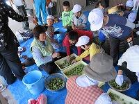 近隣の5つの保育園や幼稚園の園児、グループホームや介護施設のお年寄りの方、そして地域の方など、本校児童を含め、総勢200名での梅ちぎりとなりました。