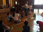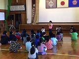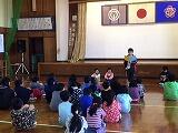 2時間目、体育館で「水難事故の場面に出会ったらどうする?」について、紙芝居などを使って学習しました。