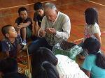 最初、校長先生の「シャボン液や道具の作り方、上手な大きなシャボン玉の飛ばし方」の指導の後、みんなでやってみました。