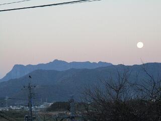 昨日の夜は曇り空で満月が見えませんでしたが、今朝学校に着くと、むかばき山の方向にくっきりと浮かんでいる様子が見えました。
