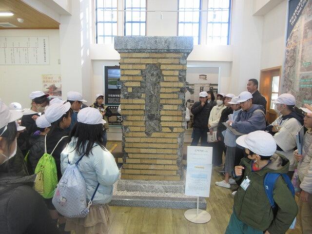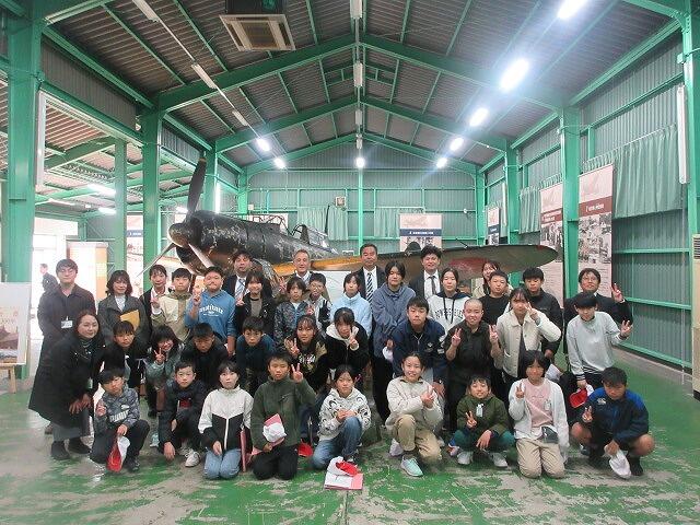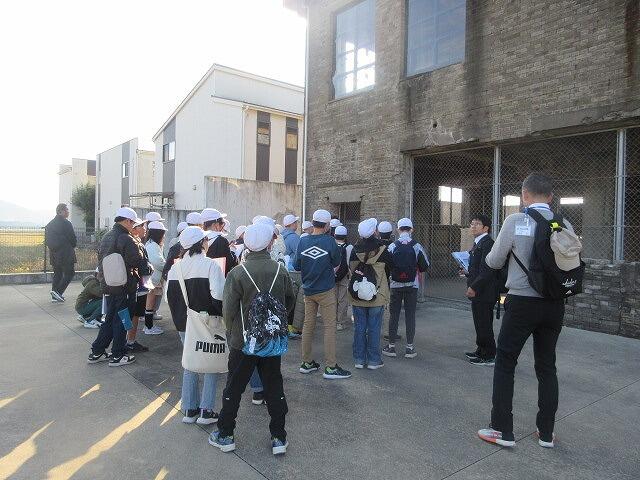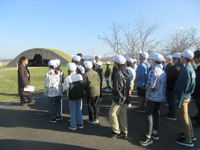 次に、宇佐市の戦争遺構の見学に行きました。現地のガイドさんに詳しく説明をしていただきながら、平和学習をすることができました。大変広い「宇佐海軍航空隊跡地」でした。掩体壕(軍用機を空襲から守るための施設)、落下傘整備所、滑走路跡、平和資料館などを見学しました。子どもたちは、戦争について、平和の大切さについて真剣に学んでいました。そして、自分にできることは何かについて考えることができたと思います。