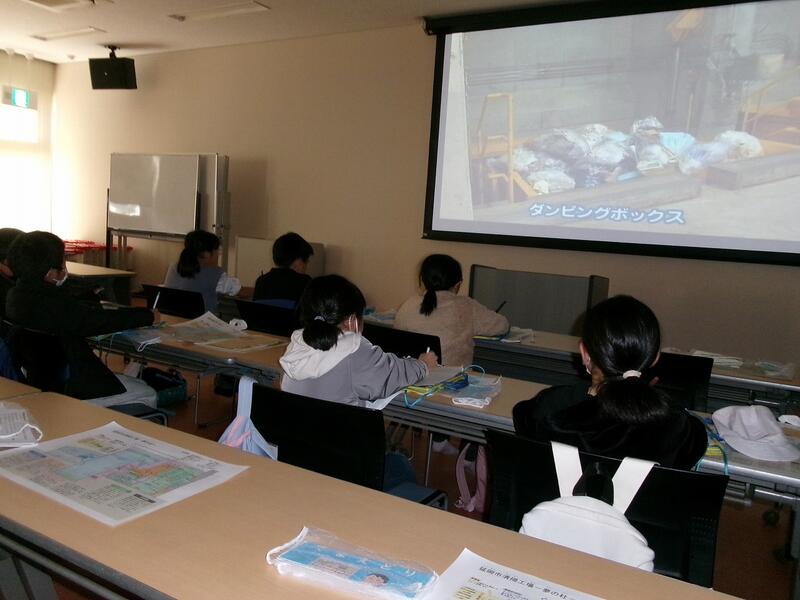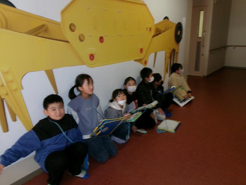 次に、クリーンセンターとゲン丸館の見学に行きました。ゴミ処理場のごみピットの中のごみクレーンが動く様子を見るときが大盛り上がりでした。ごみを攪拌して水分をとばしていること、毎日100キロのごみを焼却していることなどを聞いて、水を切ってごみを出すことやごみを減らさないといけないという気持ちをもつことができました。