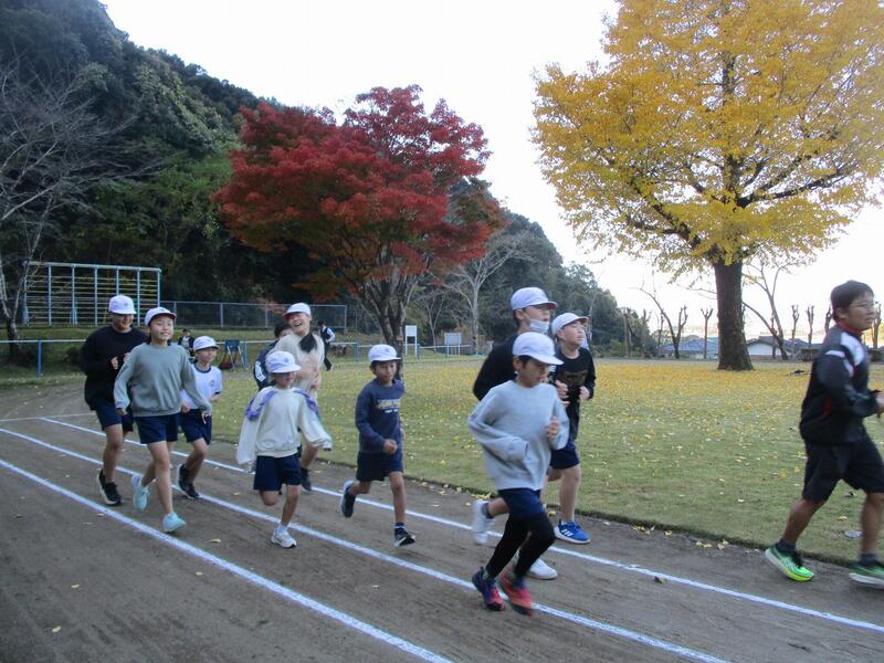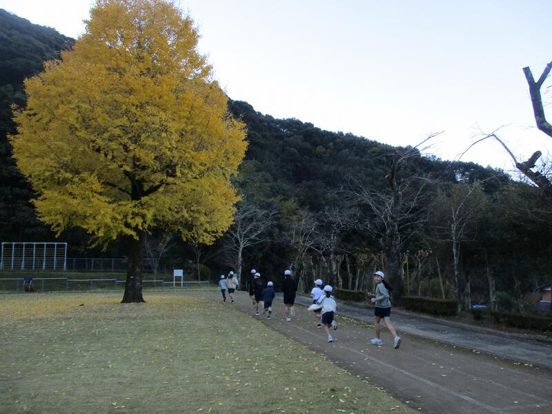 11月28日、朝の時間に「ランランタイム」を行いました。寒い中でしたが、子どもたちと先生たちは、自分のペースで、かけ足に取り組みました。おしゃべりしながら走ったり、真剣に走ったりしながら、だんだんと体があたたまりました。きれいに色づいたイチョウと紅葉も、子どもたちを優しく見守って応援してくれているようでした。