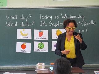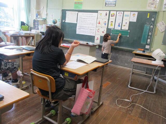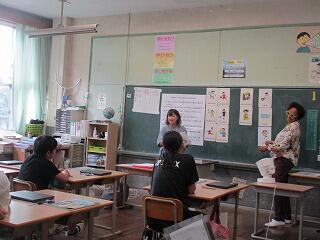 7月と9月に、旭小学校から小学校外国語教育実践加配教員の先生に来ていただきました。今日が、最後の授業でした。大変勉強になりました。ありがとうございました。