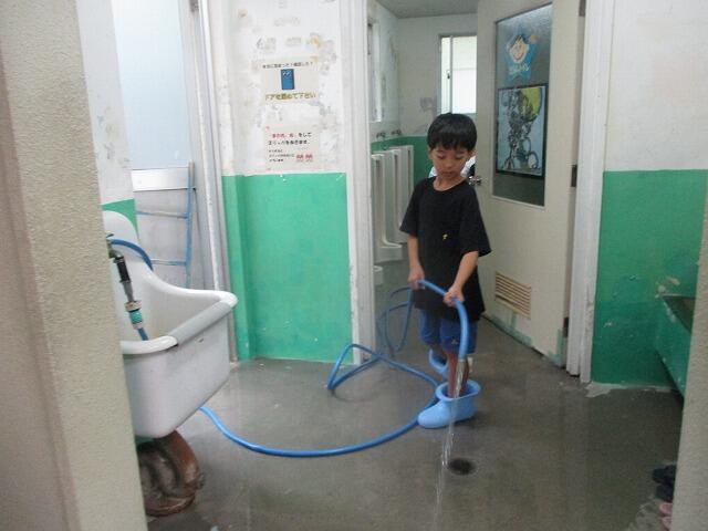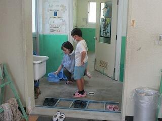 9月5日、そうじの時間の様子です。2学期から、そうじの当番や方法などが少し変わりました。少ない人数で、校舎、トイレ、体育館などのそうじをがんばっている子どもたちが、より効率的にそうじができるように工夫したところです。ぞうきんモップを活用して教室の拭き掃除をしました。また、トイレ掃除では、友達と話し合って役割分担をしながらがんばっています。