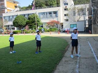 10月6日(日)の運動会に向けて、体育の時間を中心に練習をがんばっている子どもたちです。さらに、朝の会や帰りの会などの時間にも、各学級でちょっとした練習や準備をしています。