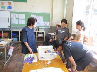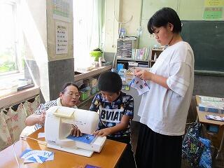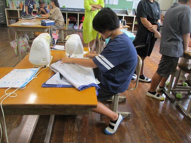 9月9日、5・6年の家庭科「ミシンで楽しくソーイング」の学習をしました。いつもお世話になっている地域の学校支援ボランティアの方においでいただき、ミシン縫いを教えてもらいました。5年生は、初めてのミシン縫いで戸惑いもありましたが、学校支援ボランティアの方と先生に丁寧に教えてもらって、上手に縫うことができていました。ありがとうございました。