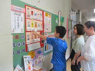 さっそく、子どもたちも先生たちも、掲示板前に立ち止まって、見たり考えたりさわってみたりしています。健康について楽しく学ぶことができる、すてきなコーナーです!