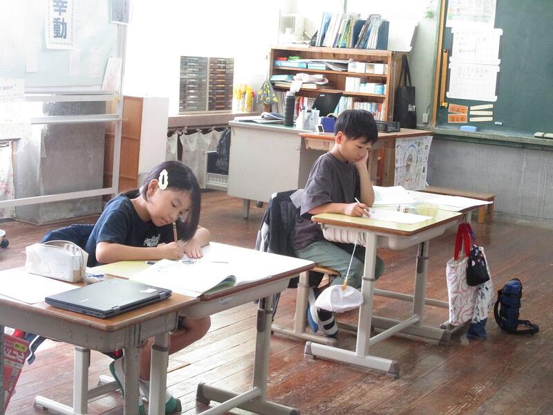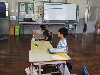 2年生は、かけ算の学習に入っています。元気な声で九九を唱えていました。やる気いっぱいです!1年生は、問題集に黙々と取り組みました。